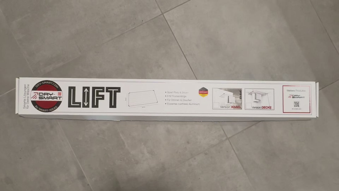 Der DRY-SMART LIFT ist ein Wäschetrockner, den man einfach unter die Decke hängt und mit Seilen auf- und ablassen kann. Er ist geeignet für den Einsatz in jedem Bereich im Haus wie z.B. das Badezimmer oder Waschküche, genauso wie draußen auf dem Balkon oder Terrasse. Das spart richtig viel Platz und die Wäsche trocknet bedeutend schneller unter der Decke durch die warme Luft, die aufsteigt.